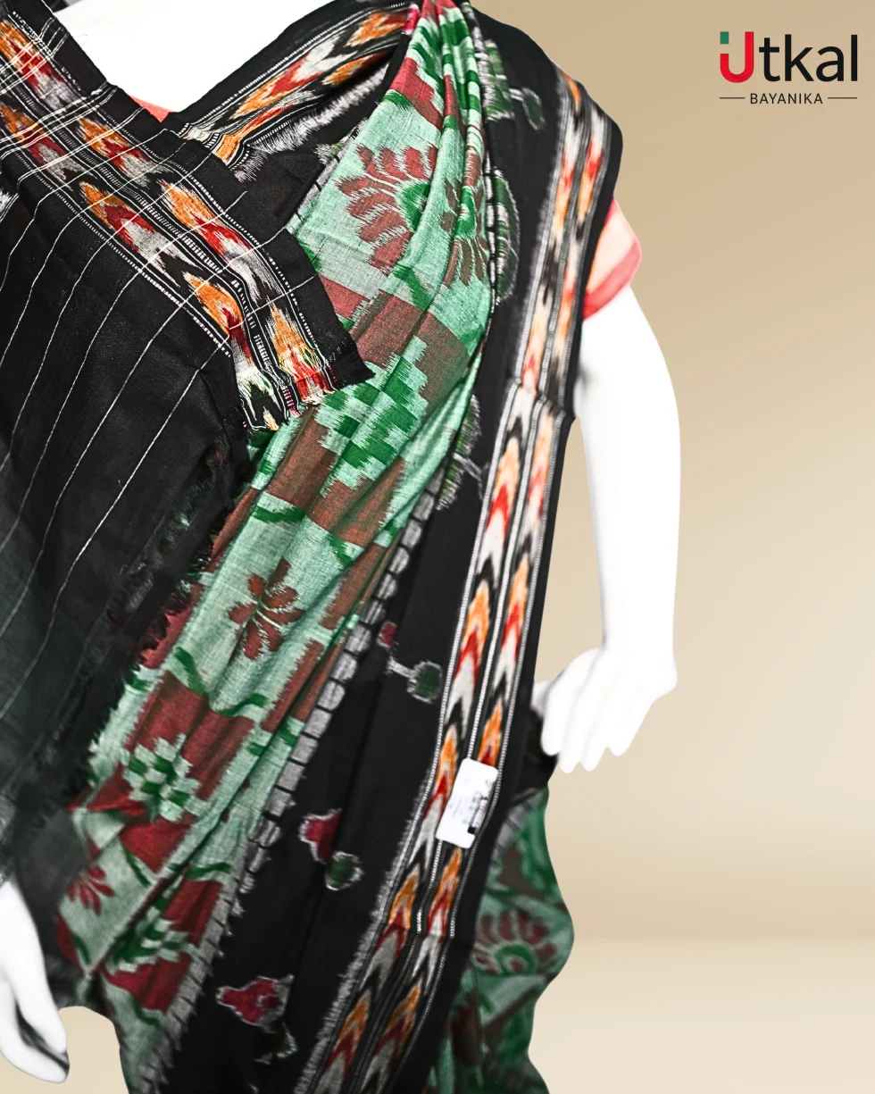 Black and Green Bandha Kala Ikat Saree.