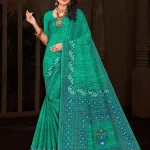 Traditional handloom saree with intricate patterns, often featuring motifs inspired by nature and Odisha’s culture.